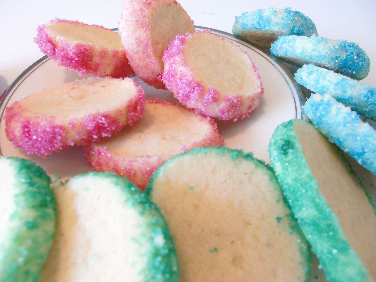 Goda, enkla brysselkex i olika färger.