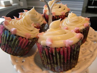 Rosa cupcakes kan man inte få nog av. Mmmm :) Måste ju börja baka till våran 1-årings kalas som närmar sej med stormsteg. Vad passar då inte bättre än rosa små konstverk?!